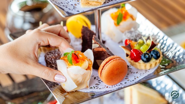 面對聖誕布甸、巴斯克蛋糕、馬卡龍,其實無需完全拒絕,可遵守「小份量」原則:布甸吃約四分之一份、蛋糕吃一小角(大約掌心大小),並細嚼慢嚥,每口咀嚼 15–20 下,更易飽足,同時減少總熱量。