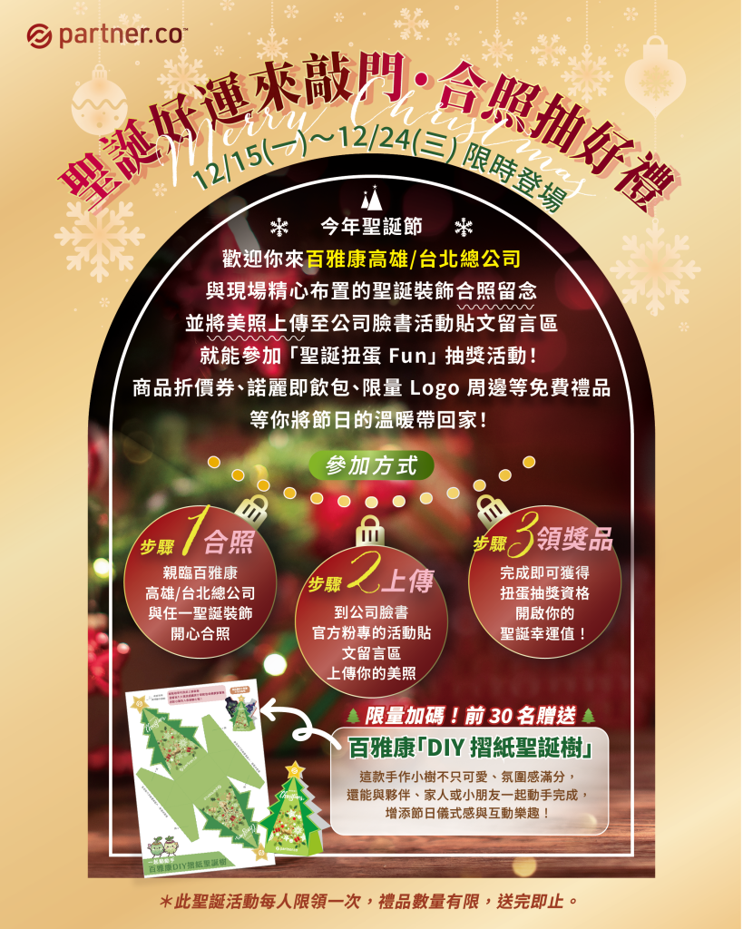 1️⃣快來百雅康高雄/台北總公司與聖誕佈置開心合照🎅📸