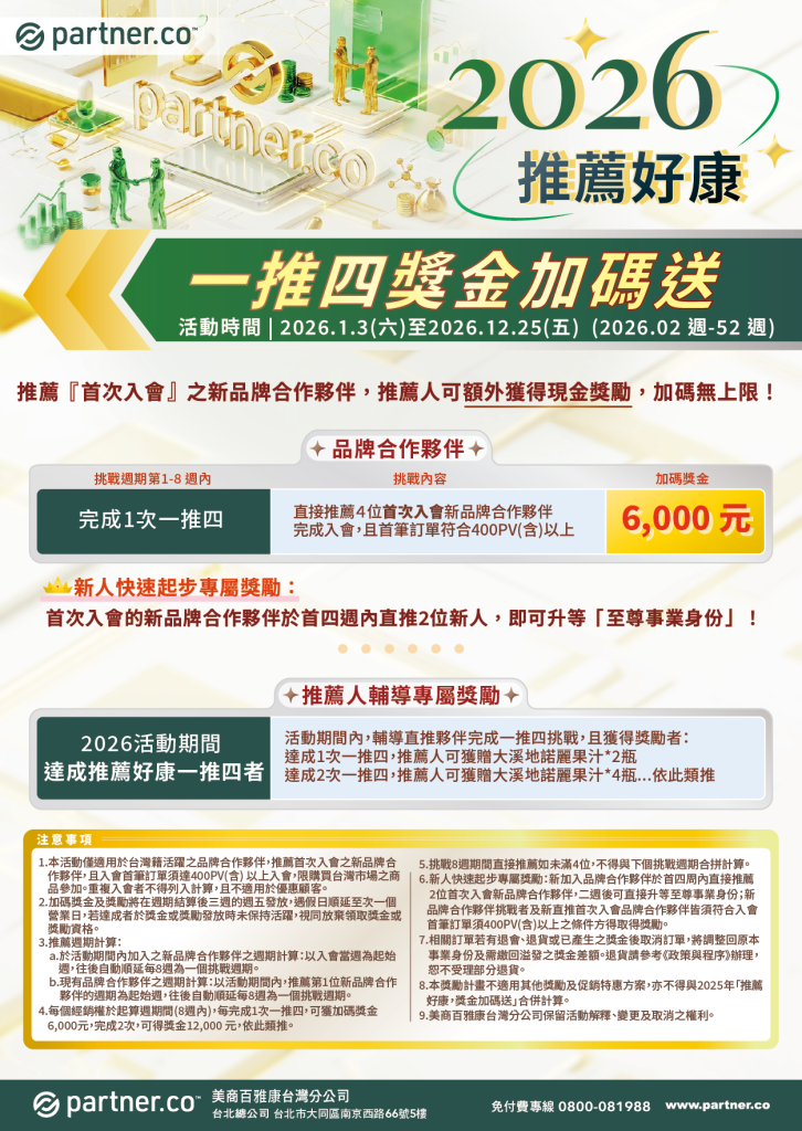 ✔️2026一推四獎金加碼送不得與2025一推四獎勵案合併計算,詳情請見下方活動DM!