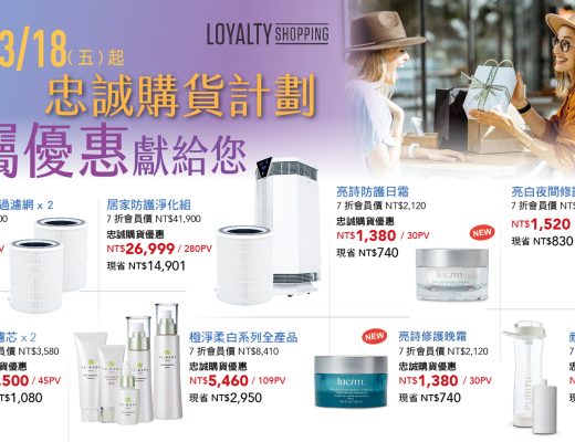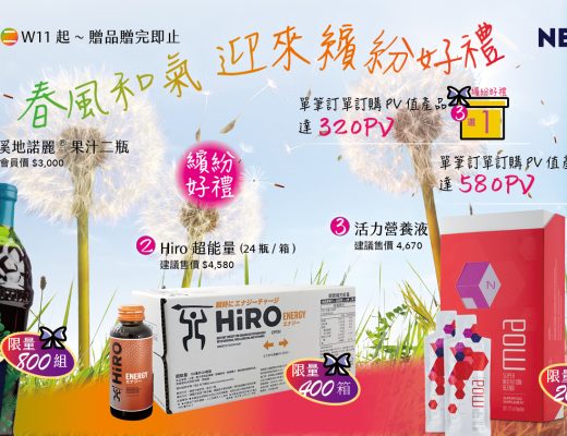 3/15(二) W11起~贈品送完 *單筆訂單滿320PV,贈繽紛好禮3選1 *單筆訂單滿580PV,贈繽紛好禮3選2 數量有限,售完即止。…