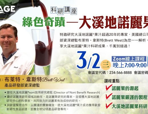 特邀研究大溪地諾麗果汁超過20年的專家,美國總公司產品研發部資深總監布萊特‧韋斯特Brett West,為您解析諾麗果的奧秘及如何為您守護健康,並與您分享大溪地諾麗果汁科研成果,千萬別錯過! 繼續閱讀 …