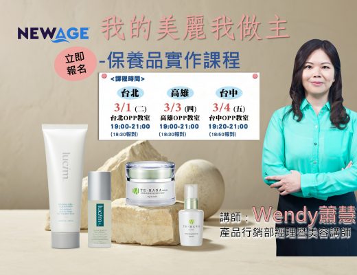 「我的美麗我做主」保養品實作課程,將為您介紹新世紀保養品的特色,並能親自體驗產品,讓您找到肌膚美麗再生的秘密!課程熱烈報名中,切勿錯過! …