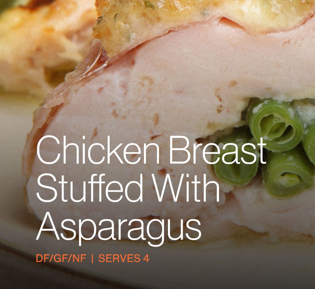 Add 3 stalks of asparagus and a couple of pieces of sun-dried tomatoes and some chopped sage in each chicken breast and close with a toothpick.